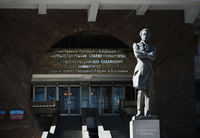 У главного входа в здание университета, на площади перед памятником А.С. Пушкину, Предстоятеля Русской Православной Церкви встречали: министр образования и науки Кыргызской Республики Г.К. Кудайбердиева, заместитель директора Государственной комиссии по делам религии Кыргызской Республики З.Д. Чотаев, Чрезвычайный и Полномочный посол Российской Федерации в Кыргызской Республике А.А. Крутько, ректор КРСУ В.И. Нифадьев.