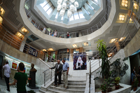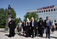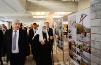Затем Святейший Патриарх Московский и всея Руси Кирилл, министр образования и науки Кыргызской Республики Г.К. Кудайбердиева, ректор КРСУ В.И. Нифадьев, иерархи Русской Православной Церкви и другие гости осмотрели фотовыставку, подготовленную к визиту Его Святейшества в Бишкекскую епархию.