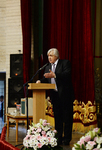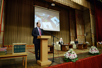 От имени всех присутствующих В.И. Нифадьев поблагодарил Святейшего Владыку за посещение вуза и вручил Его Святейшеству подборку книг, изданных в университете, икону преподобноисповедника Ираклия Иссык-Кульского и памятный сувенир, выполненный из минералов Кыргызстана.
