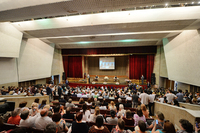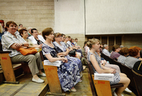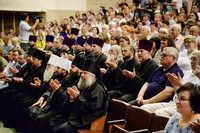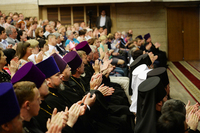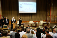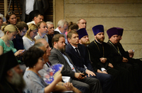 Перед началом встречи со Святейшим Патриархом Кириллом в актовом зале состоялся показ фильма, посвященного биографии Его Святейшества.