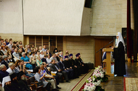В числе гостей университета были: глава Среднеазиатского митрополичьего округа митрополит Ташкентский и Узбекистанский Викентий, председатель Отдела внешних церковных связей Московского Патриархата митрополит Волоколамский Иларион, временный управляющий Патриаршим благочинием приходов Русской Православной Церкви в Туркменистане архиепископ Пятигорский и Черкесский Феофилакт, руководитель Административного секретариата Московской Патриархии архиепископ Солнечногорский Сергий, епископ Душанбинский и Таджикистанский Питирим, епископ Бишкекский и Кыргызстанский Даниил, председатель Синодального отдела по взаимоотношениям Церкви с обществом и СМИ В.Р. Легойда, руководитель Пресс-службы Патриарха Московского и всея Руси священник Александр Волков, секретарь ОВЦС по межрелигиозным отношениям священник Димитрий Сафонов, сотрудник ОВЦС МП Д.И. Петровский, духовенство Бишкекской епархии.