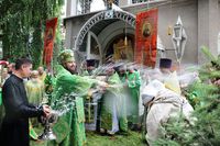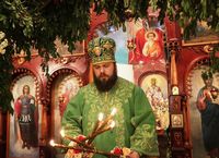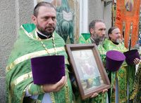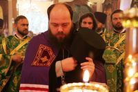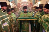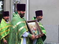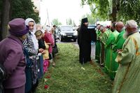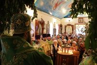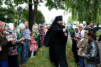 По завершении литургии владыка Даниил возглавил крестный ход вокруг храма, затем обратился к прихожанам со словом архипастырского наставления.