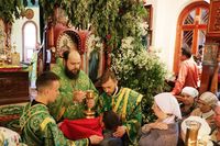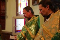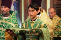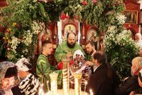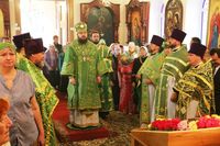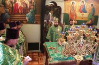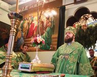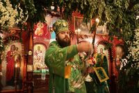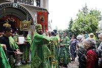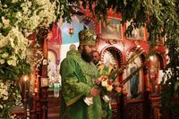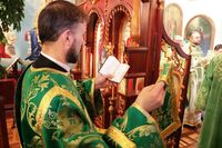 По завершении архипастырского слова, владыка Даниил подарил протоиерею Андрею Махрову богослужебное Евангелие. «Святейший Патриарх Кирилл передал нам несколько Евангелий, и Вы сегодня первым удостоились получить его в престольный праздник вашего храма в честь Духа Святого».