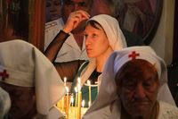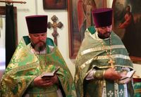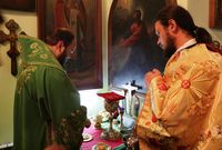 Его Преосвященству сослужили: благочинный Беловодского округа, настоятель храма Сошествия Святого Духа протоиерей Алексей Махров, ключарь Свято-Воскресенского собора иерей Георгий Дворовой, настоятель храма святого великомученика Димитрия Солунского протоиерей Александр Мезенцев, настоятель храма Тихвинской иконы Божией Матери протоиерей Николай Сущенко, настоятель храма Архистратига Божия Михаила иерей Александр Пелин, настоятель храма Покрова Пресвятой Богородицы иерей Виктор Гончарук.
