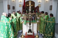За торжественным богослужением был совершен молебен преподобному Ираклию. В этот день, во время Божественной литургии и до конца службы для особого поклонения была открыта дверца раки с мощами небесного покровителя земли Кыргызстанской.