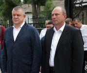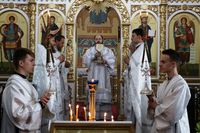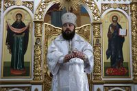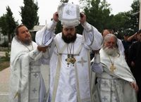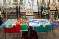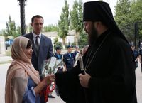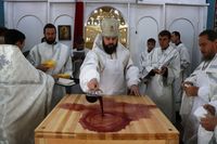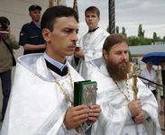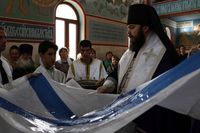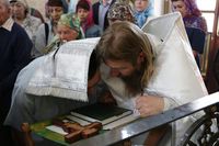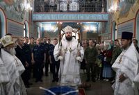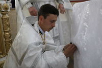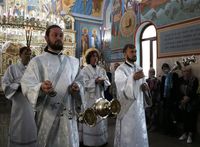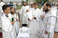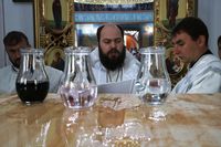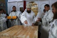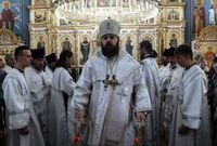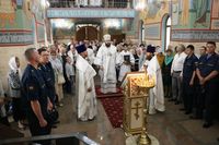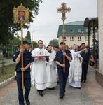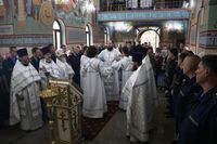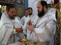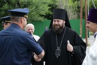 Его Преосвященству сослужили: протоиерей Валентин Никонов, благочинный Ошского округа протоиерей Виктор Реймген, ключарь Свято-Воскресенского кафедрального собора иерей Георгий Дворовой, настоятель храма во имя благоверного князя Александра Невского иерей Евгений Циклаури, настоятель храма Покрова Пресвятой Богородицы иерей Олег Бибик.