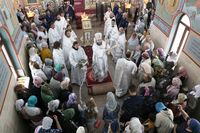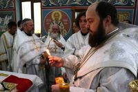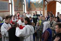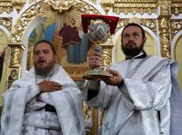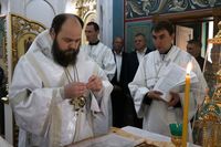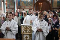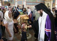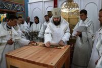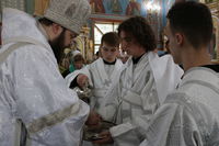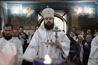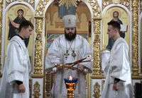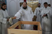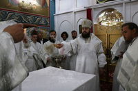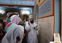 До причастия владыка Даниил обратился к прихожанам с архипастырским словом, в котором упомянул об основных этапах строительства храма и поздравил прихожан со свершившимся освящением.