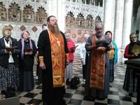 Паломники побывали на Божественной литургии в храме Пресвятой Троицы, который находится в центре Парижа недалеко от Эйфелевой башни. Это был первый престольный праздник в этом храме. Службу возглавлял епископ Корсунский Нестор.