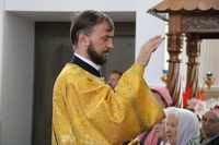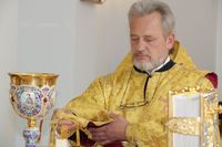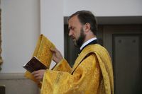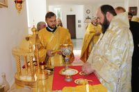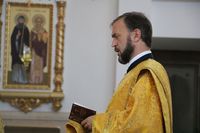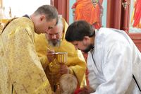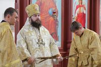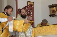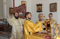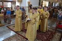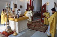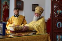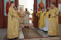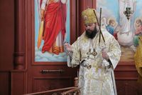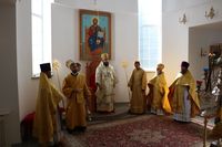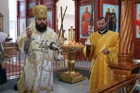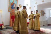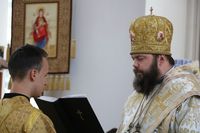 Его Преосвященству сослужили: протоиерей Валентин Никонов, ключарь Свято-Воскресенского собора иерей Георгий Дворовой, клирик собора иерей Сергий Чудайкин.