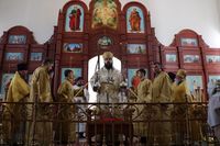 23 июля 2017 года, седмицу 7-ю по Пятидесятнице, день положения честной ризы Господа нашего Иисуса Христа в Москве, епископ Бишкекский и Кыргызстанский Даниил совершил Божественную Литургию в Свято-Воскресенском кафедральном соборе.