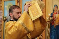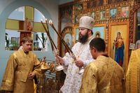 Его Преосвященству сослужили: протоиерей Валентин Никонов, настоятель Владимирского собора протоиерей Алексей Зайцев, ключарь Свято-Воскресенского кафедрального собора иерей Георгий Дворовой, клирики Владимирского собора иерей Андрей Бутаков, иерей Никита Чебуков.