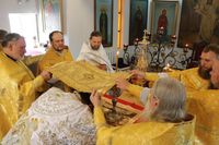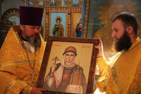 За богослужением был совершен крестный ход вокруг храма и отслужен молебен княгине Ольге.