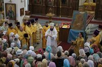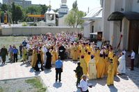 По завершении литургии был совершен крестный ход вокруг собора и епископ Даниил прочитал молитву князю Владимиру.