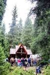 Когда уже спускались вниз после праздничной Божественной Литургии, начался дождь. Но на настроение паломников это никак не повлияло. Несмотря на дождь и усталость, все ощущали радость и присутствие благодати.