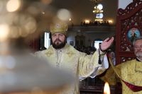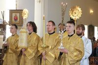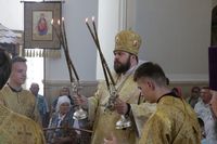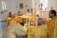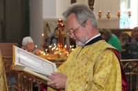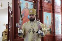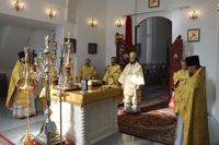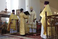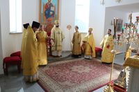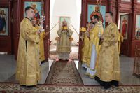 Его Преосвященству сослужили: протоиерей Валентин Никонов, ключарь Свято-Воскресенского кафедрального собора иерей Георгий Дворовой, благочинный Бишкекского округа протоиерей Андрей Кунавин, клирик Свято-Воскресенского кафедрального собора иерей Сергий Чудайкин.