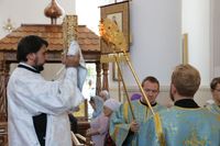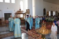 Его Преосвященству сослужили: протоиерей Валентин Никонов, ключарь Свято-Воскресенского собора иерей Георгий Дворовой, благочинный Бишкекского округа протоиерей Андрей Кунавин, клирики собора иерей Сергий Чудайкин, иерей Олег Белотуркин.