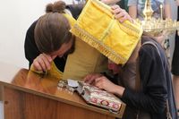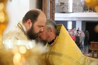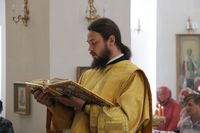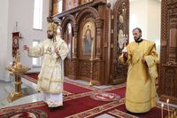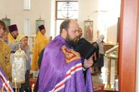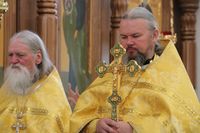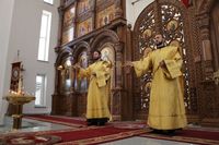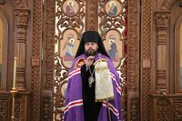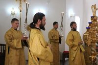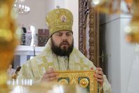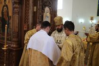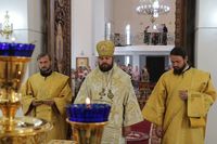 Его Преосвященству сослужили: протоиерей Валентин Никонов, настоятель Владимирского собора протоиерей Алексий Зайцев, ключарь Свято-Воскресенского кафедрального собора иерей Георгий Дворовой.