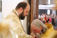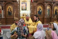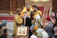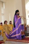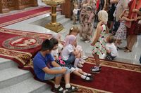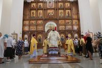 По завершении богослужения епископ Даниил обратился к прихожанам с архипастырским словом, в котором сообщил о ближайших праздниках и богослужениях и пригласил прихожан Владимирского собора 13 сентября почтить день обретения святых мощей преподобного Ираклия Иссык-Кульского в Свято-Воскресенском кафедральном соборе.