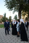 После осмотра мавзолея Гур-Эмир Святейший Патриарх Кирилл посетил прием, который был устроен от имени хокимията (местной администрации) Самаркандской области в честь визита Его Святейшества.