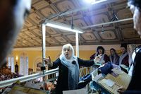 По окончании богослужения митрополит Викентий приветствовал Святейшего Патриарха Кирилла и преподнес Его Святейшеству сувениры, выполненные самаркандскими мастерами.