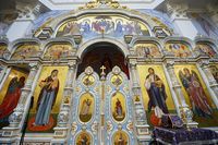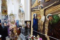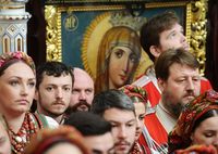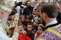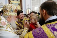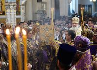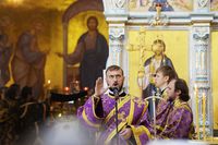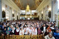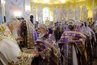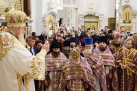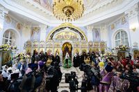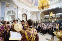Телеканал «Союз» осуществлял прямую трансляцию из Успенского собора. , Верующие, не попавшие в собор, могли следить за трансляцией по большому экрану, установленном перед вратами храма.