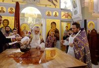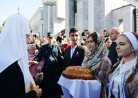 В дар новоосвященному собору Святейший Владыка передал икону Христа Спасителя, для храмов Ташкентской епархии ― напрестольные Евангелия.