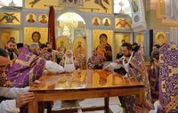 Проповедь перед причастием произнес протоиерей Сергий Стаценко, настоятель храма святого Александра Невского в Ташкенте, проректор Ташкентской духовной семинарии.