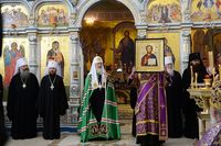 Его Святейшеству сослужили: митрополит Ташкентский и Узбекистанский Викентий, глава Среднеазиатского митрополичьего округа; митрополит Волоколамский Иларион, председатель Отдела внешних церковных связей; митрополит Новгородский и Старорусский Лев; митрополит Екатеринбургский и Верхотурский Кирилл; архиепископ Пятигорский и Черкесский Феофилакт; архиепископ Солнечногорский Сергий, руководитель Административного секретариата Московской Патриархии; епископ Душанбинский и Таджикистанский Питирим; епископ Котласский и Вельский Василий; епископ Бишкекский и Кыргызстанский Даниил; протоиерей Михаил Котляров, клирик Успенского кафедрального собора г.Ташкента; протоиерей Игорь Балухатин, настоятель Владимирского храма г. Ташкента, благочинный Ташкентского округа; священник Александр Волков, руководитель Пресс-службы Патриарха Московского и всея Руси; духовенство Ташкентской епархии.