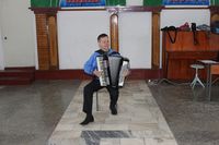 Денис Владимирович Городничий, аккордеонист, худ.руководитель оркестра русских народных инструментов Петрозаводской музыкальной школы исполнил несколько музыкальных произведений, в том числе карельскую народную польку. А также вместе Гаевской И.А. они провели веселую музыкально-познавательную викторину на тему русской истории и культуры. Кыргызстанские школьники показали хорошие знания истории, культуры и музыки России, а также получили много вкусных карельских пряников и конфет.