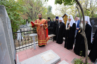 Святейший Патриарх Кирилл совершил заупокойную литию по почившим архипастырям и священнослужителям Ташкентской епархии. После возложения цветов на могилы ташкентских святителей была пропета «Вечная память».
