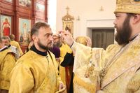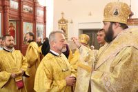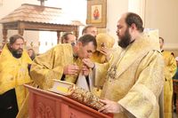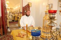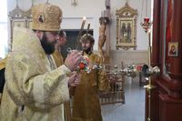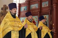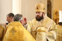 Его Преосвященству сослужили: протоиерей Валентин Никонов, ключарь Свято-Воскресенского кафедрального собора, благочинный Бишкекского округа протоиерей Андрей Кунавин, клирики собора иерей Георгий Дворовой, иерей Сергий Чудайкин, иерей Вадим Паскин, иерей Олег Белотуркин.