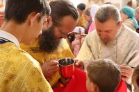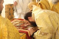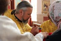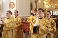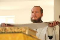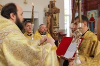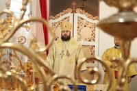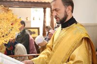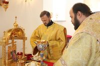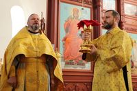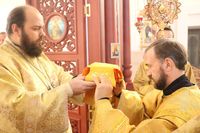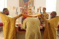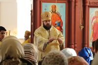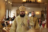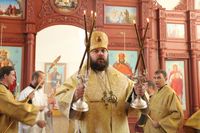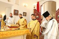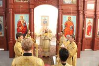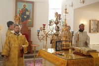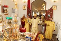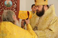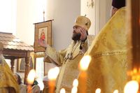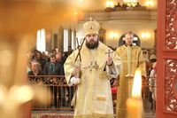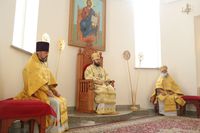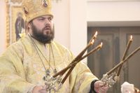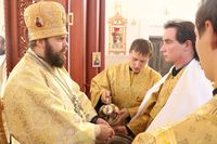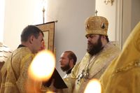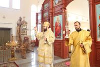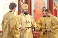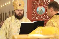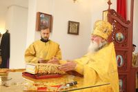 Его Преосвященству сослужили: протоиерей Валентин Никонов, клирики собора иерей Георгий Дворовой, иерей Сергий Чудайкин.