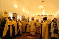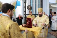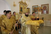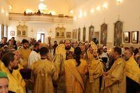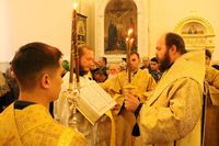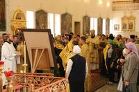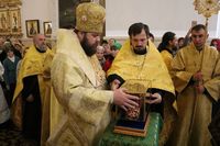 По прибытии святыни Его Преосвященство в сослужении духовенства Бишкекской епархии возглавил молебен в соборе.