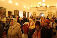 На встречу святыни собрался полный храм верующих. Люди пришли соборно помолиться, поскольку знают об особом молитвенном предстательстве святого пред Божьим Престолом.