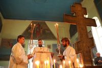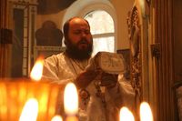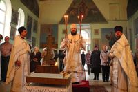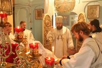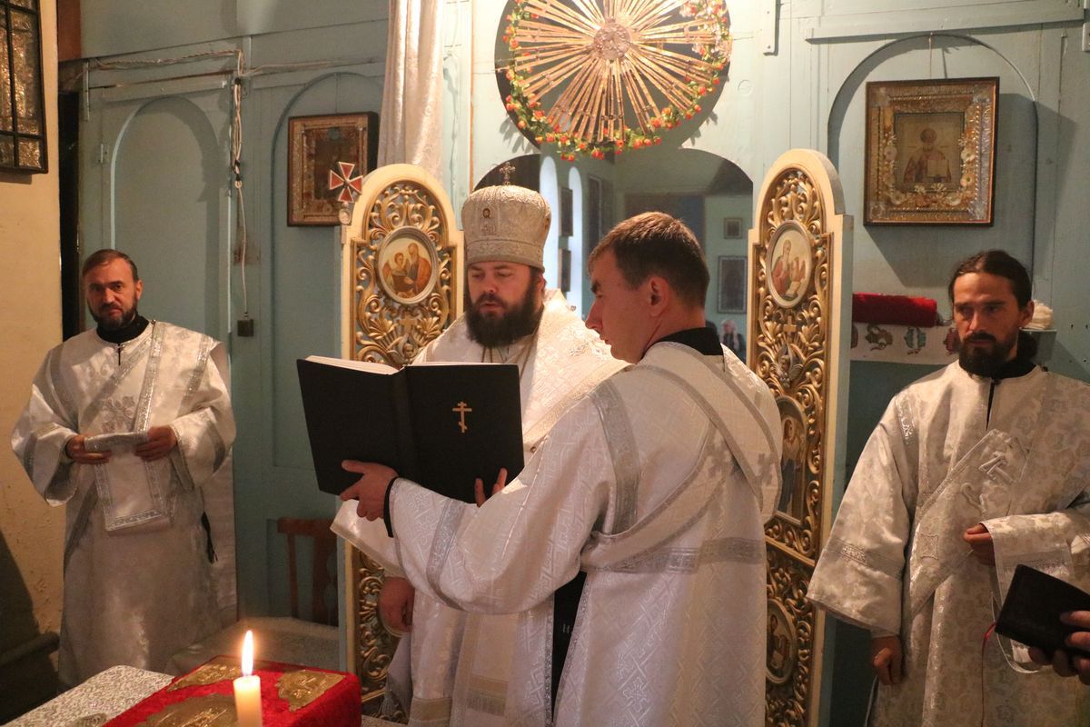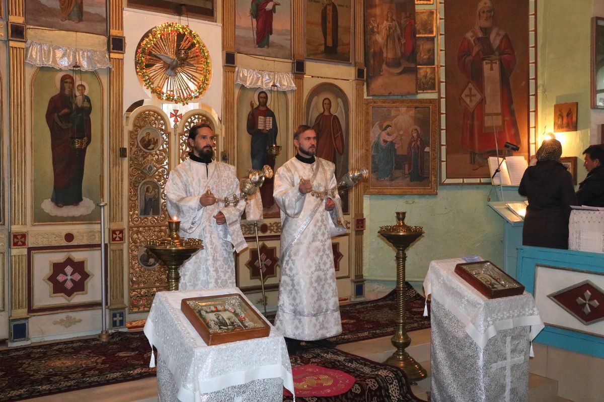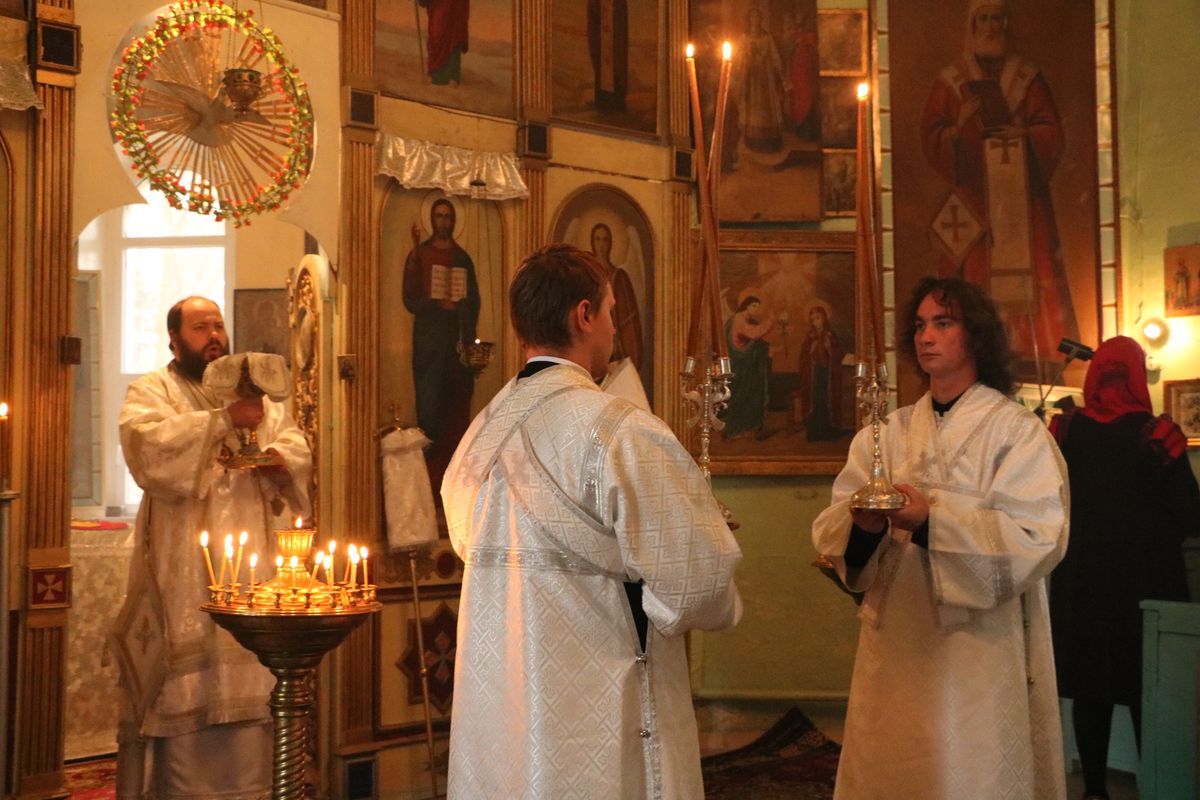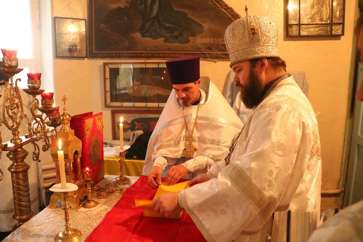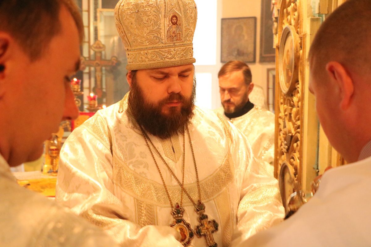 Его Преосвященству сослужили: благочинный округа, настоятель храма великомученика Димитрия Солунского протоиерей Димитрий Шушпанов и клирик Свято-Воскресенского кафедрального собора иерей Георгий Дворовой.