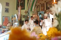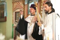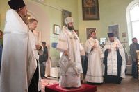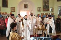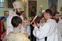 Его Преосвященству сослужили: благочинный округа, настоятель храма великомученика Димитрия Солунского протоиерей Димитрий Шушпанов и клирик Свято-Воскресенского кафедрального собора иерей Георгий Дворовой.