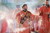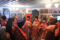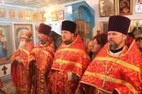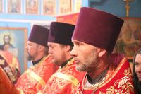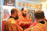 Его Преосвященству сослужили: протоиерей Валентин Никонов, благочинный Беловодского округа протоиерей Алексий Махров, настоятель храма влкмч. Димитрия Солунского протоиерей Александр Мезенцев, помощник духовника епархии иеромонах Ираклий (Коростелев), настоятель храма святого праведного Иоанна Кронштадтского протоиерей Андрей Борисенко, настоятель храма Архангела Михаила протоиерей (с.Семеновка) Евгений Мезенцев, клирик Свято-Воскресенского кафедрального собора иерей Георгий Дворовой.