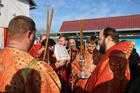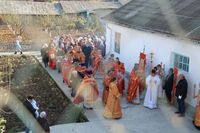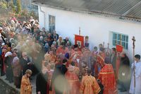 По завершении литургии владыка Даниил возглавил крестный ход вокруг храма и прочитав молитву Димитрию Солунскому, обратился к прихожанам с архипастырским словом.