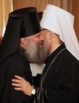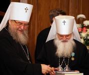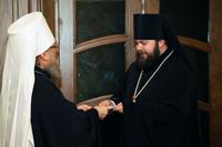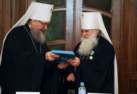 Глава Православной Церкви Казахстана вручил памятные медали "145 лет Туркестанской епархии", изготовленные в Казахстане специально к юбилейной дате, Главе и архипастырям Среднеазиатского Митрополичьего округа.