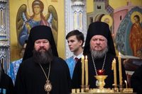 Главам Митрополичьих округов сослужили: архиепископ Уральский и Актюбинский Антоний, архиепископ Чимкентский и Таразский Елевферий, викарий Астанайской епархии епископ Талдыкорганский Нектарий, епископ Павлодарский и Экибастузский Варнава, епископ Карагандинский и Шахтинский Севастиан, епископ Усть-Каменогорский и Семипалатинский Амфилохий, епископ Душанбинский и Таджикистанский Питирим, епископ Бишкекский и Кыргызстанский Даниил, епископ Кокшетауский и Акмолинский Серапион, епископ Петропавловский и Булаевский Владимир; духовенство Ташкентской епархии, священнослужители, прибывшие с архипастырями.