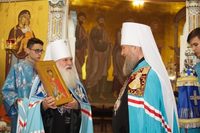 После отпуста Литургии митрополит Викентий приветствовал митрополита Александра, выразив сердечную радость в связи с возможностью общения за общей Чашей Святой Евхаристии в день, посвященный воспоминанию 145-летия образования Туркестанской епархии. На молитвенную память Главе Православной Церкви Казахстана от Ташкентской епархии был преподнесен образ благоверного великого князя Александра Невского.