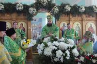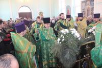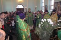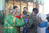 Его Преосвященству сослужили: протоиерей Валентин Никонов, настоятель храма во имя святого праведного Иоанна Кронштадтского протоиерей Андрей Борисенко, настоятель храма великомученика Димитрия Солунского протоиерей Александр Мезенцев, настоятель храма во имя благоверных князей Бориса и Глеба протоиерей Артемий Долотов, настоятель храма Архистратига Божия Михаила иерей Александр Пелин, клирик Свято-Воскресенского кафедрального собора иерей Георгий Дворовой.