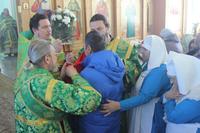 Поздравляя всех прихожан с престольным праздником, владыка Даниил отдельно поздравил сестер милосердия и социальный отдел епархии, который носит имя св. прав. Иоанна Кронштадтского и в его лице имеет сугубое покровительство. «Иоанн Кронштадтский, – отметил владыка, – имел особое служение. Через его руки проходили миллионы рублей золотом, и все эти деньги, до копейки он употреблял на строительство храмов, богаделен, приютов по всей матушке России. Это всероссийский батюшка – так его называли, это – пророк, голос церкви. Это совершенно особый святой, данный нам Господом во времена трудные, предреволюционные. И в наши дни он также говорит к нашему сердцу и напоминает нам об особой добродетели, которую он стяжал в себе – это любовь Божия. Не было бы никаких чудес, не было бы никакой благой деятельности, не имей Иоанн Кронштадтский в своем сердце совершенную любовь». В своем слове Его Преосвященство отметил жертвенную деятельность сестер милосердия и сотрудников отдела социального служения и пожелал им особого заступничества и молитвенного предстояния пред Престолом Божьим их святого покровителя – святого праведного Иоанна Кронштадтского. В завершении слова владыка Даниил поблагодарил всех за соборную молитву, пожелал милости Божией и стяжания добродетели и любви по примеру великого русского святого – всероссийского батюшки – Иоанна Кронштадтского.