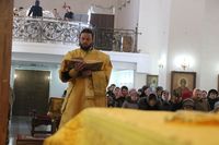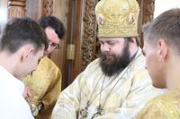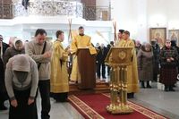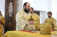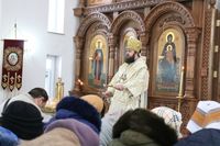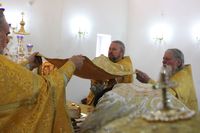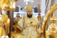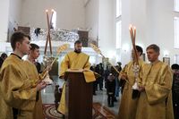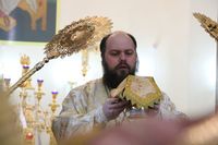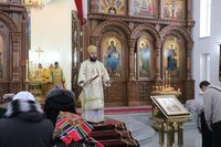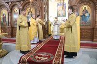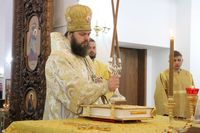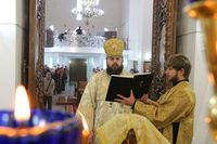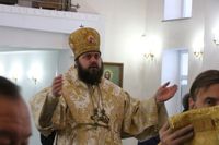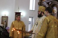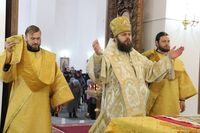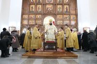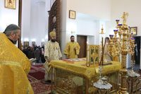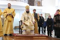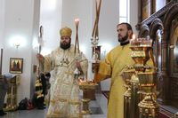 Его Преосвященству сослужили: протоиерей Валентин Никонов, протоиерей Алексий Зайцев, иерей Георгий Дворовой, иерей Илья Меляков.