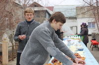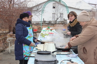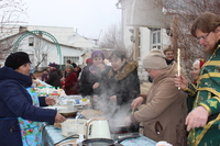 17 февраля, в субботу Сырную, благочинный Ошского округа протоиерей Виктор Реймген в сослужении настоятеля протоиерея Анатолия Золотарева совершил молебен в храме в честь пророка Божия Илии г. Кызыл-Кия. По окончании богослужения о.Виктор приветствовал настоятеля и прихожан храма, поздравив их с праздником Масленицы и преддверием Великого Поста. Испросив прощения накануне Прощённого Воскресения, благочинный пожелал прихожанам избавления от страстей и стяжания добродетелей в спасительном поприще св. Четыредесятницы и поблагодарил о.Анатолия и, в лице третьего секретаря Генерального Консульства РФ в Оше Мещерякова Н.В., Генконсульство за организацию праздника для соотечественников. А во дворе храма всех ожидало чаепиетие с традиционными блинами, пирогами, русская народная музыка и приятное общение.