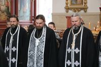 За богослужением Его Преосвященству сослужили клирики Свято-Воскресенского собора.