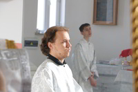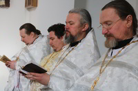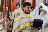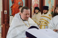 Правом ношения наперстного креста с украшениями – секретарь Бишкекской и Кыргызстанской епархии протоиерей Алексий Сыромятников.