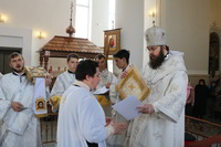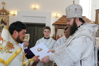 За богослужением Его Преосвященством было совершено награждение священников Бишкекской и Кыргызстанской епархии.