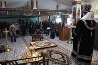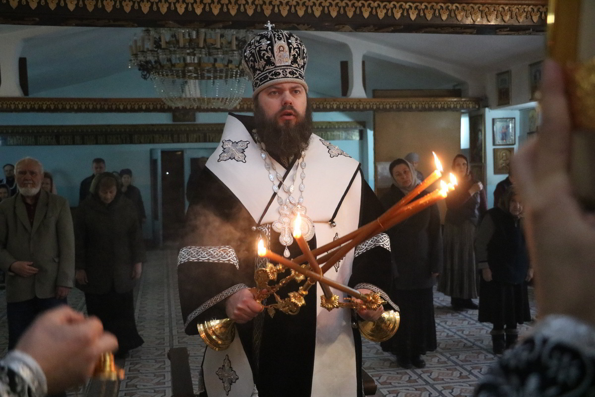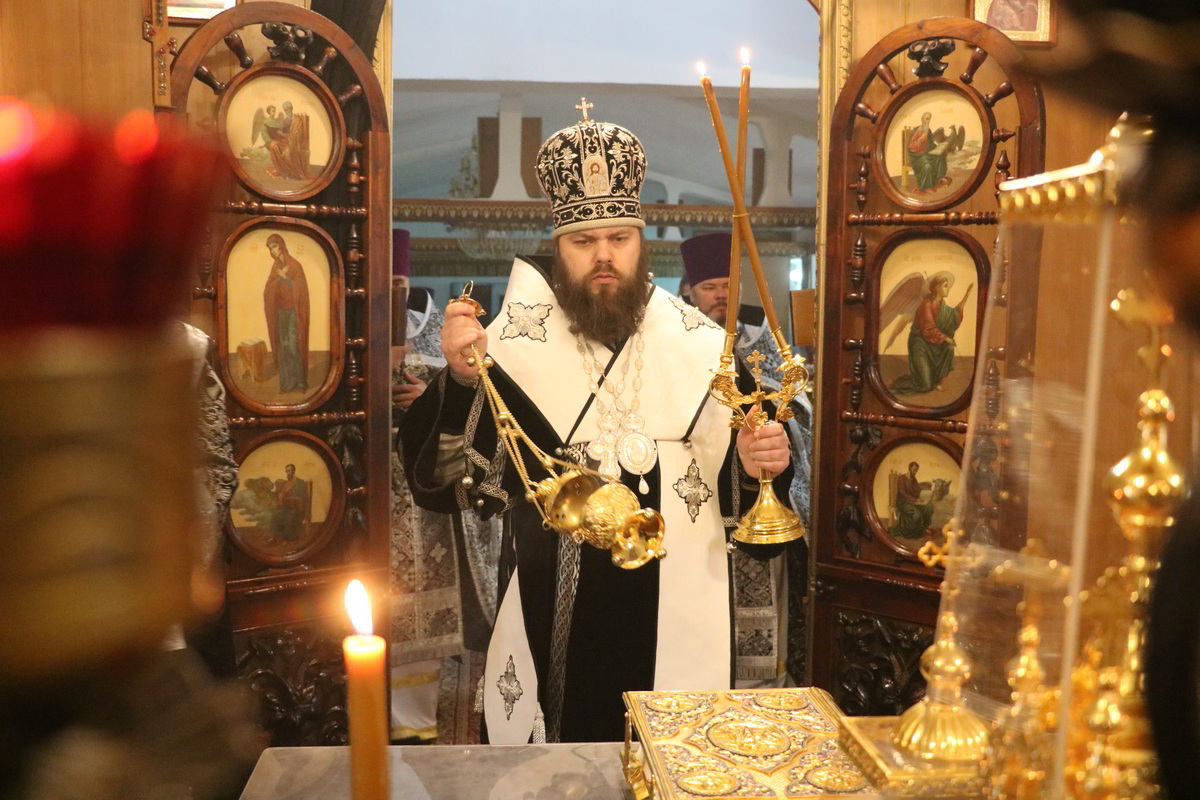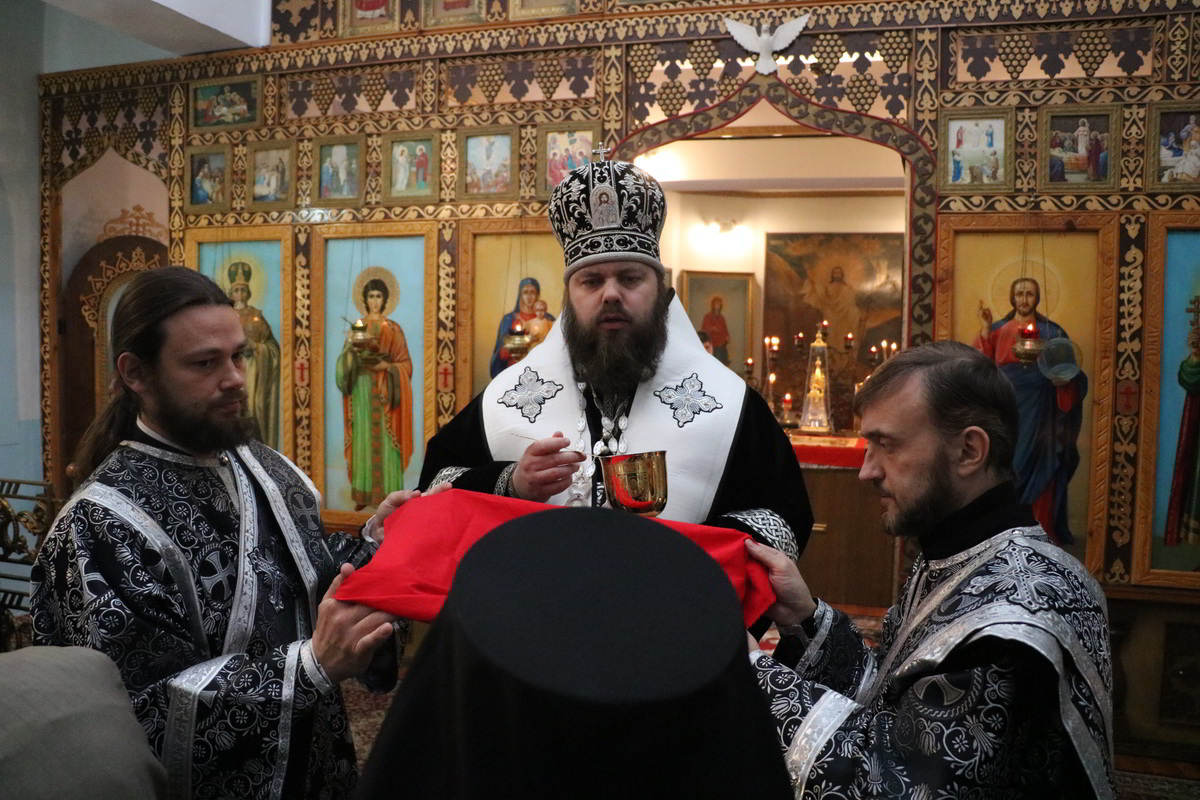 Его Преосвященству сослужили протоиерей Алексей Зайцев, иерей Георгий Дворовой, иерей Вадим Паскин, иерей Илия Меляков.