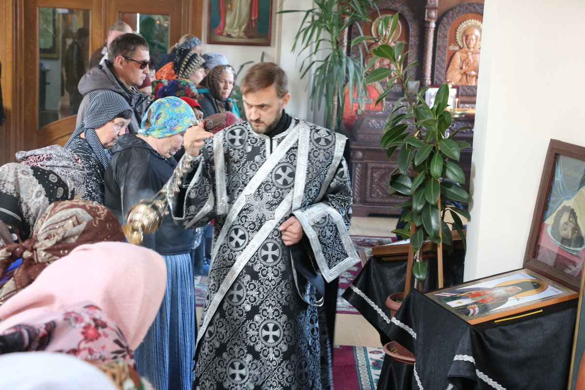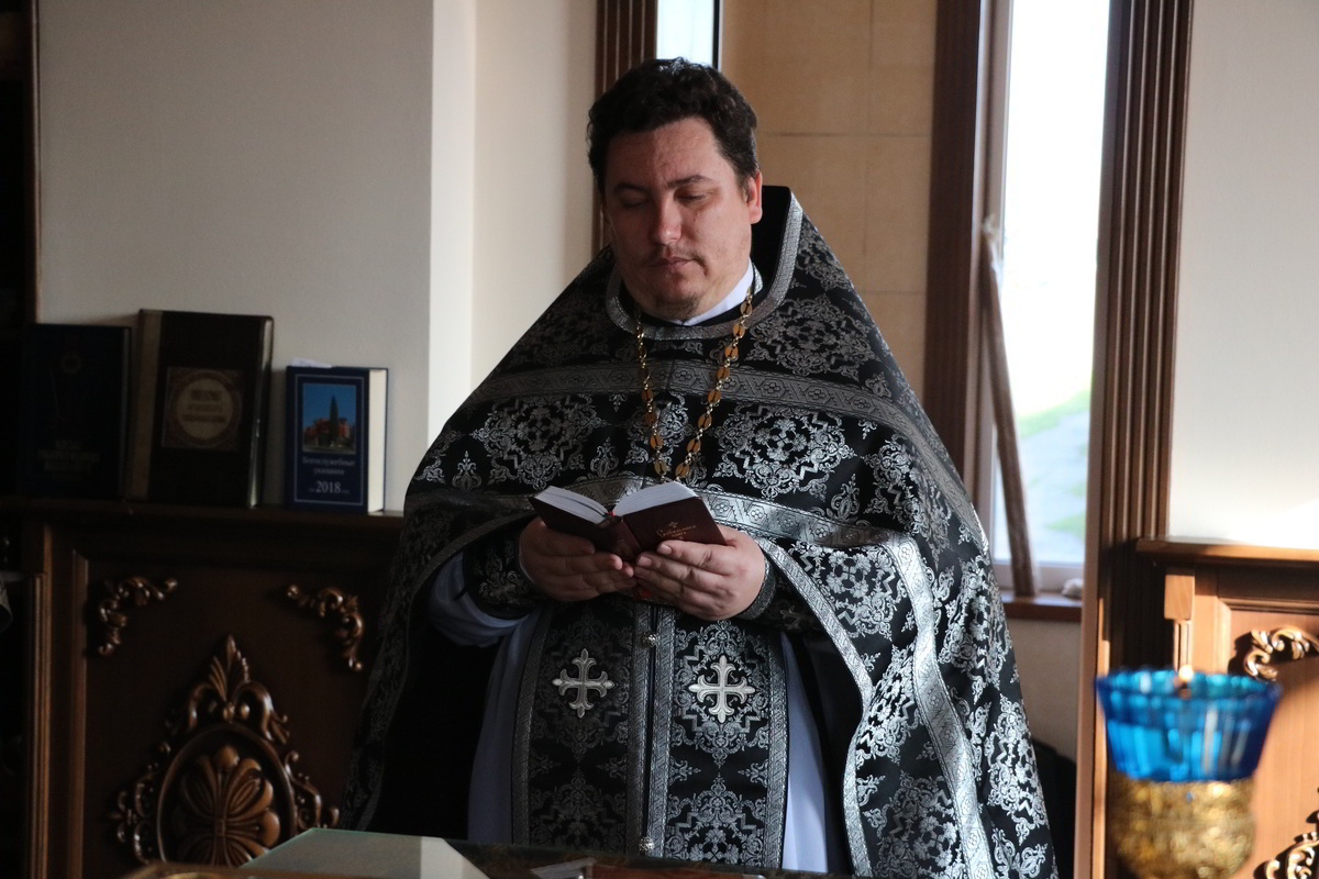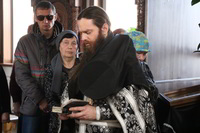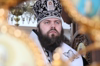 Его Преосвященству сослужили: настоятель храма Архистратига Божия Михаила иерей Александр Пелин, клирик храма иеромонах Серафим (Шаталин), клирик Свято-Воскресенского кафедрального собора иерей Георгий Дворовой.